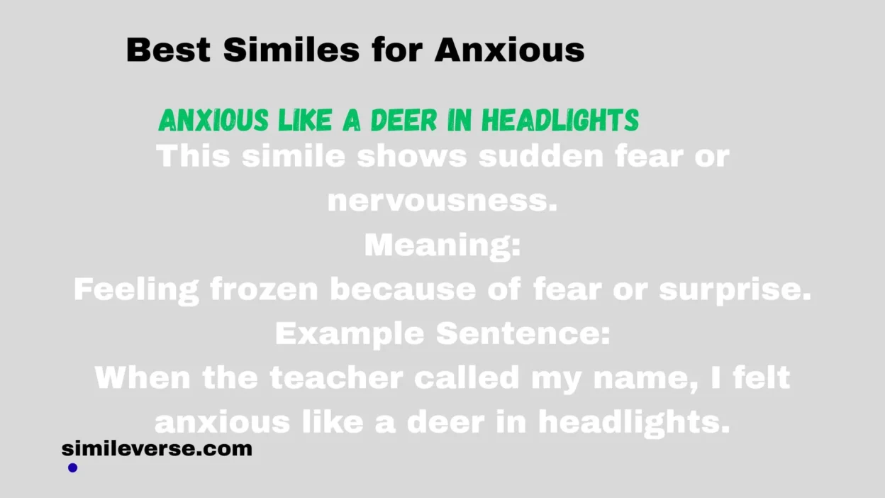 Similes turn anxious feelings into clear pictures we can understand and share. Whether you’re a student, teacher, parent, or writer, learning the best similes for anxious helps explain emotions gently and creatively. Use these similes in stories, essays, conversations, and daily life to make feelings easier to express and understand.