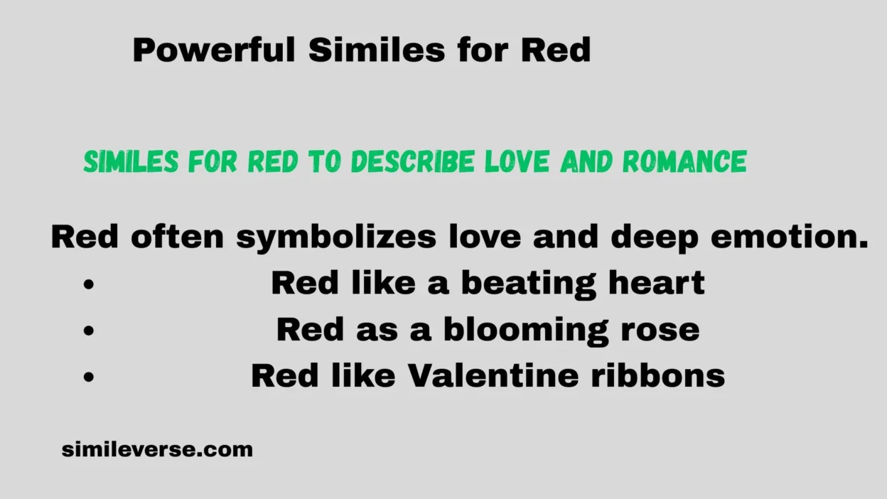 Similes for red are powerful tools that make writing colorful, emotional, and exciting. From simple kid-friendly comparisons to deep creative expressions, red similes help readers imagine, feel, and connect with words. If