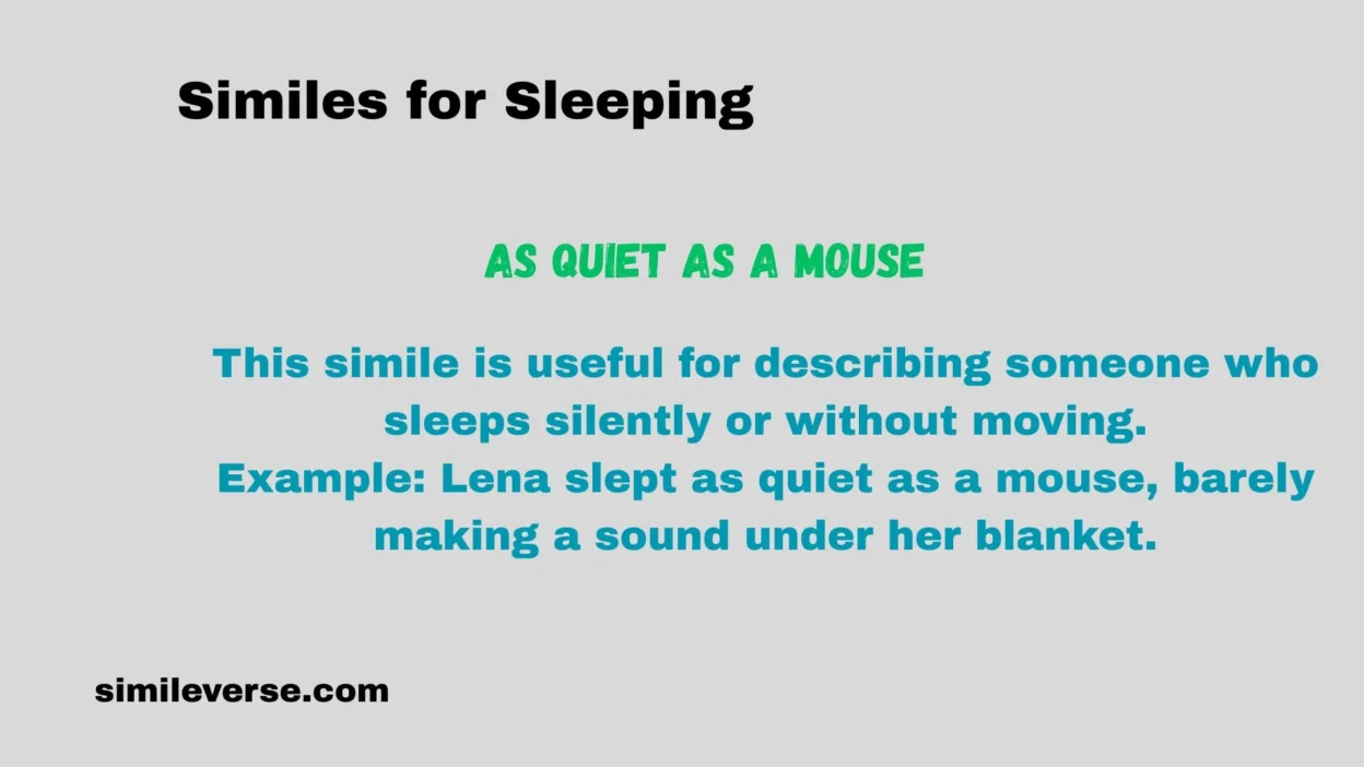 Example: Lena slept as quiet as a mouse, barely making a sound under her blanket.